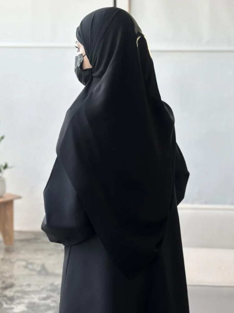 • القماش: كريب الملكي (من الخارج) بلون الأسود الملكي، مع بطانة قطن ربع .